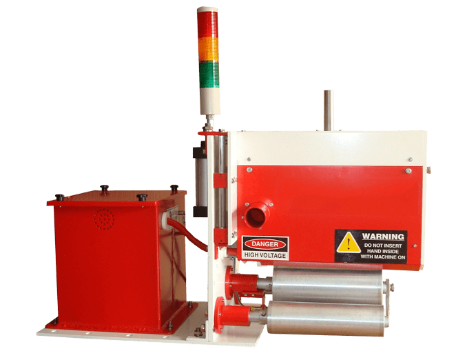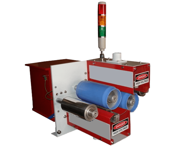 Often, our customers discover that batches of incoming material have low dyne level(surface adhesion) or that the dyne level of the material on stock has decreased due to heat or humidity. Due to the low dyne level the narrow printing press cannot run at full speed.As a consequence the Electro Tech Inc. Corona systems are used for boosting already treated materials to create high adhesion ability.