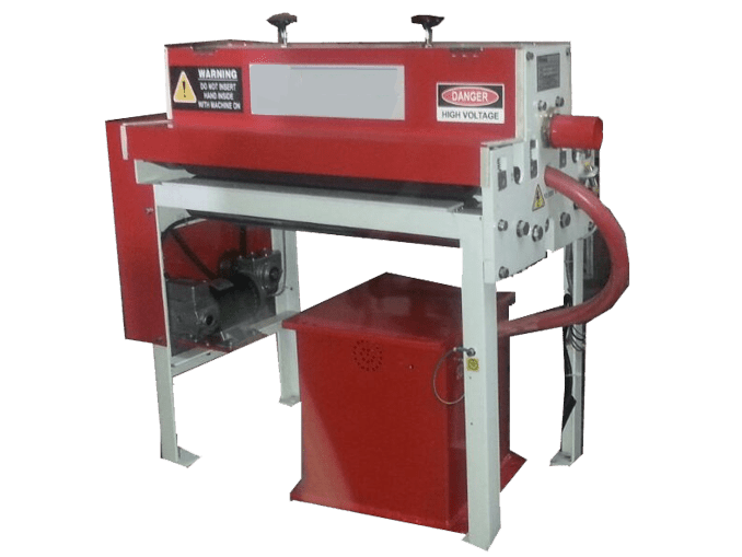 Electro Tech Inc. sheet corona treater is widely used to treat PP,PVC and metallised polyester laminated sheets to increase surface tension and gives better printing and adhesion.